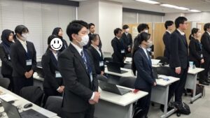 各チーム、朝礼でその日の予定を発表。