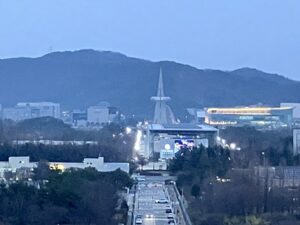 ホテルから見えた ハンビッ塔(한빛탑)